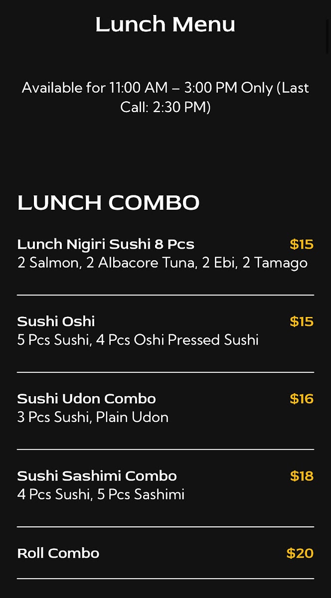Sushi Sora Menu